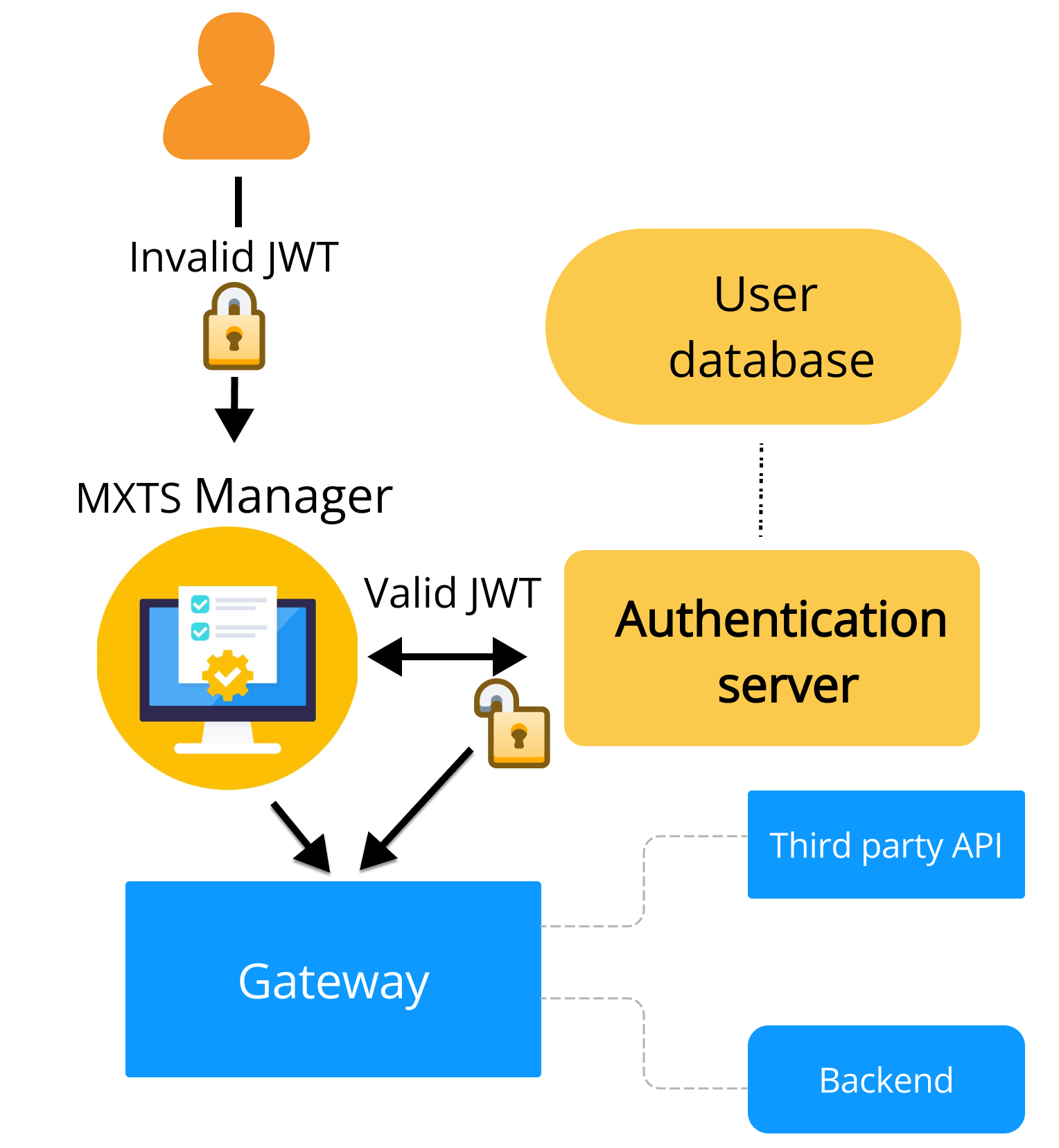 - Token-Based Access – Once authentication is confirmed by the third party, Maxxton’s system is granted access to the user’s details stored in the external database. The authentication server then verifies user requirements and issues a token, granting access to the system.