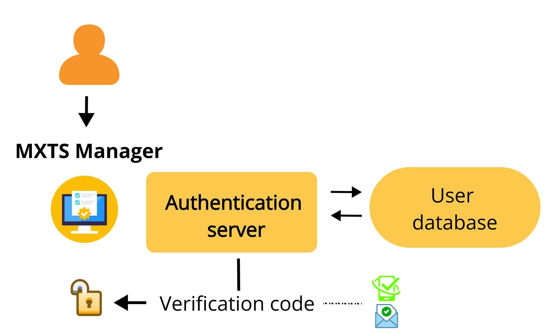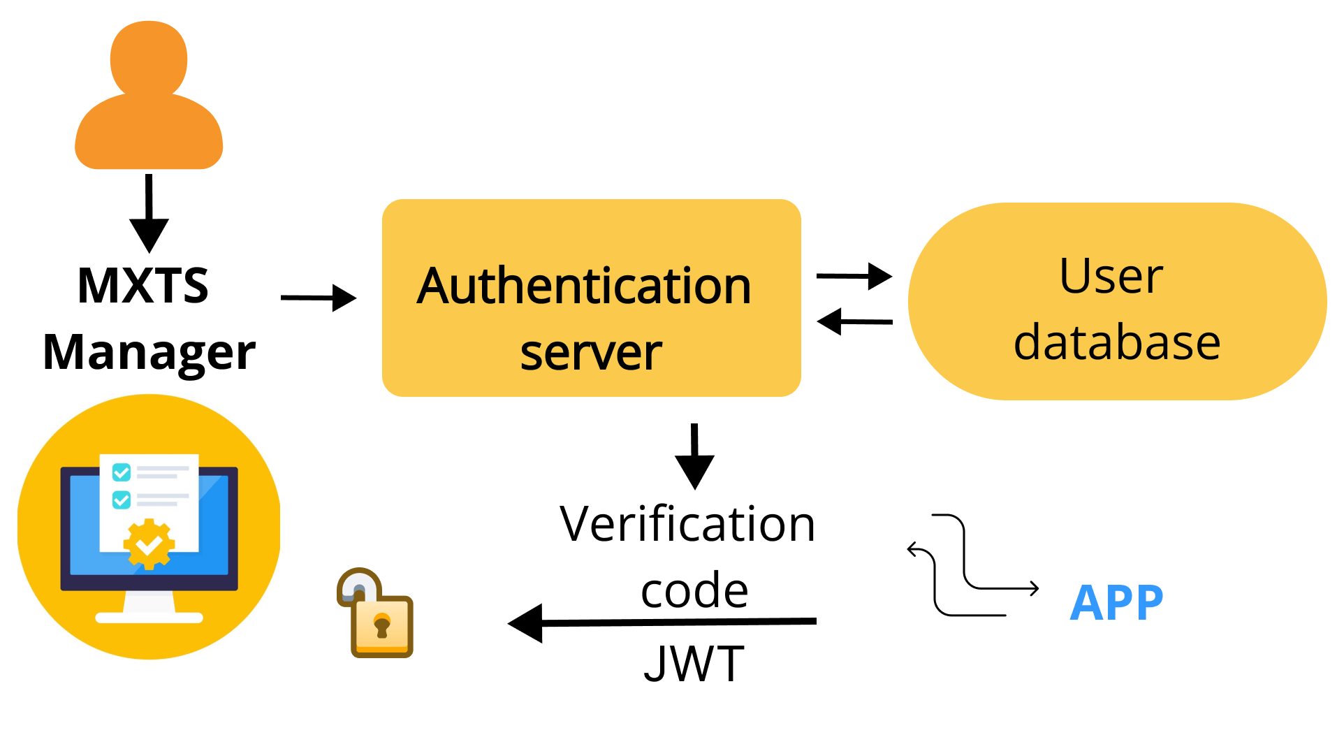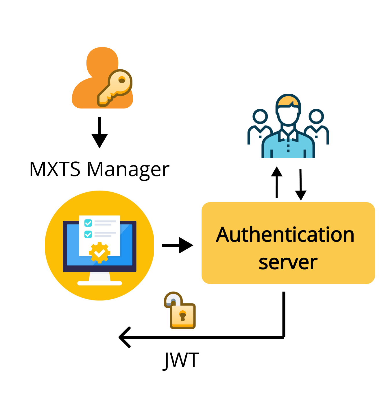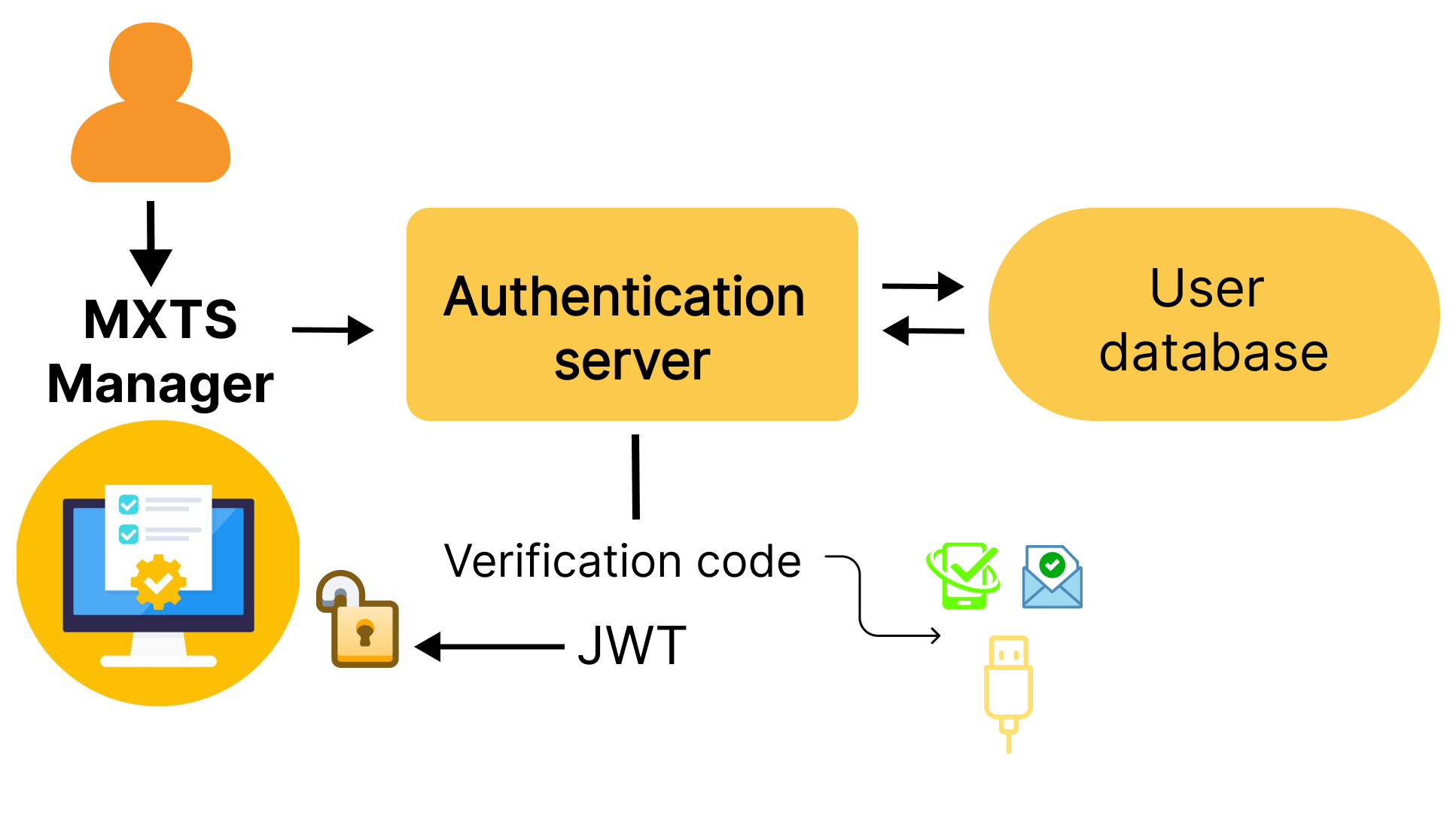 - Manager-Controlled Access – A manager, connected to the central Authenticator Server, can generate time-limited access tokens (e.g., valid for half a day) via an app. These tokens are then sent directly to the temporary employee’s mobile phone.