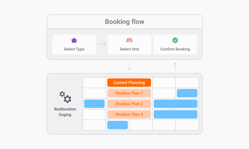It’s actually quite clever. Maxxton’s smart reallocation uses what’s called “shadow plans”. These are background scenarios that keep tabs on every potential booking situation.